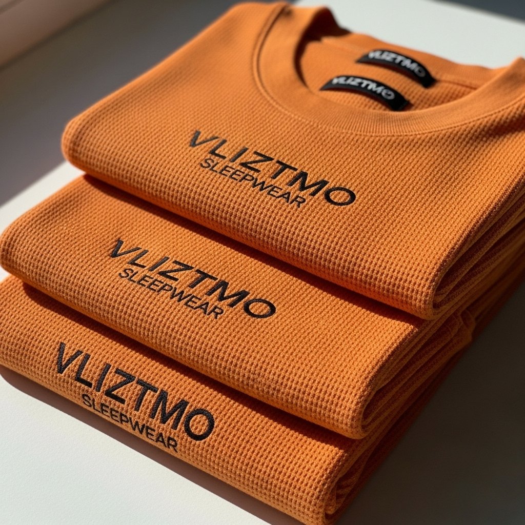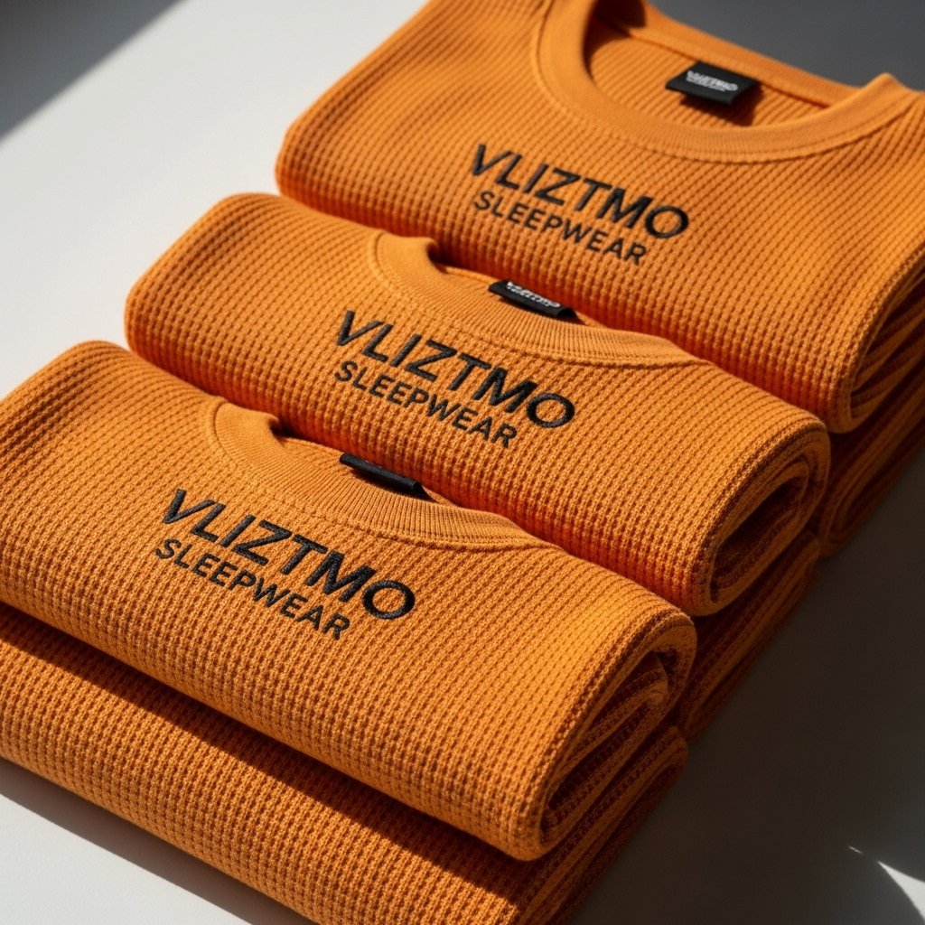 Crafted from premium thermal fabric, it provides excellent insulation while remaining lightweight and gentle on the skin. The vibrant orange color brings energy and warmth, while the black Vliztmo branding enhances its modern, stylish appeal. Whether you’re lounging at home or getting ready for bed, this sleepwear ensures maximum comfort and a flattering fit.